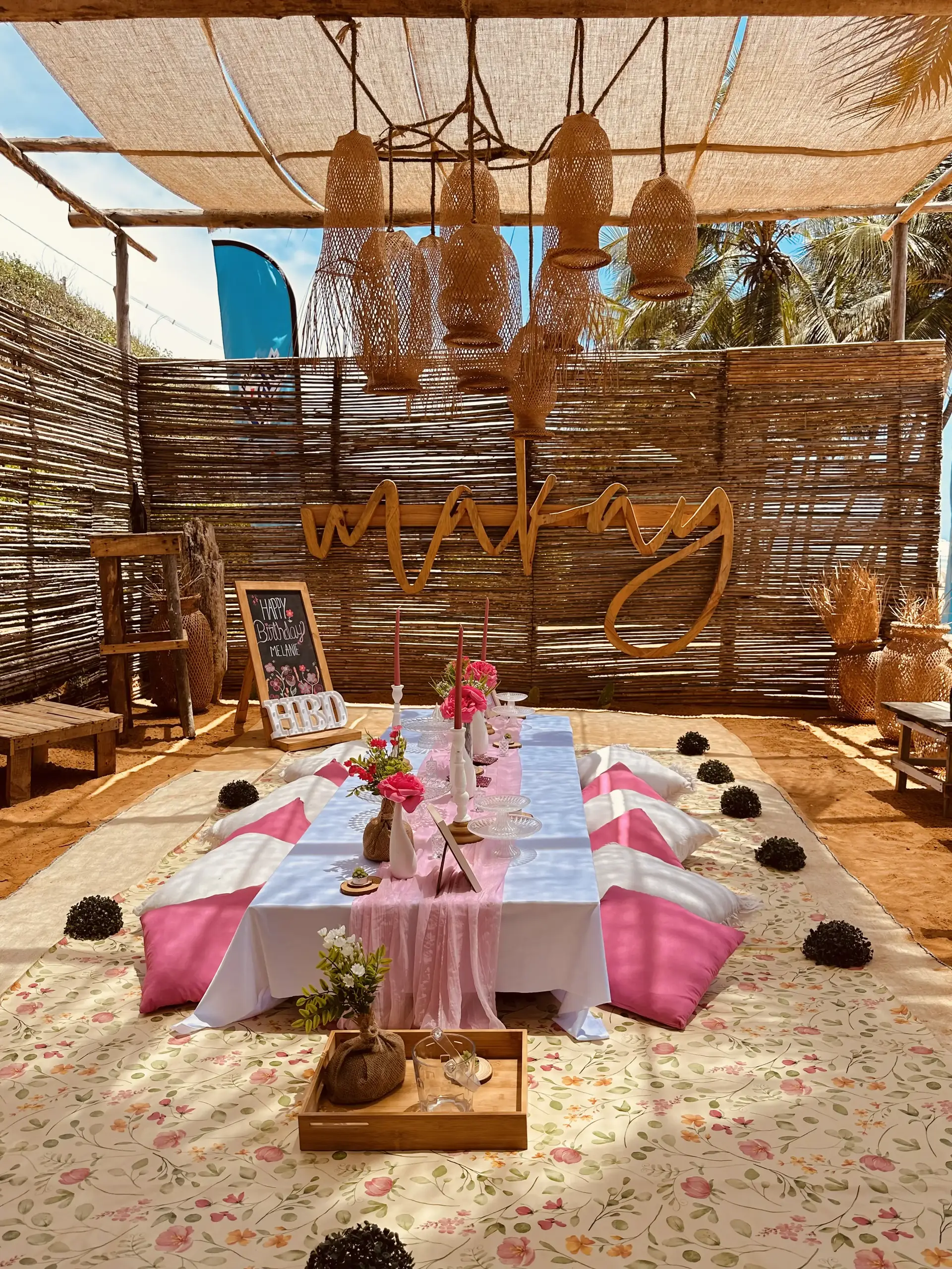 En Picnic Eventos Mgta, creemos que las celebraciones más memorables nacen de la atención a los pequeños detalles. Cada elemento, desde la selección de flores hasta la disposición de los cojines, se elige cuidadosamente para crear una atmósfera mágica.